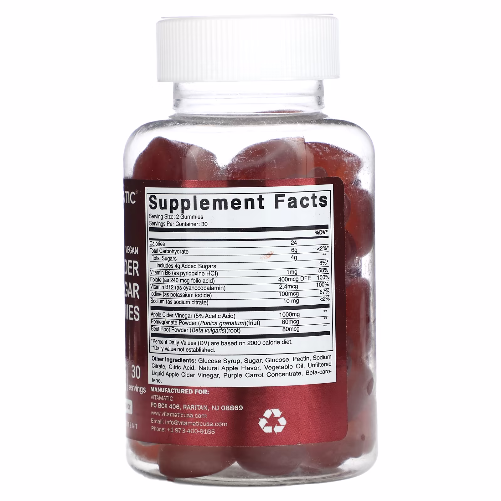 • 美味的蘋果味 Vitamatic 蘋果醋軟糖 – 無需飲用和服用會導致胃酸反流和產生難聞餘味的未加工蘋果醋液體和丸劑。